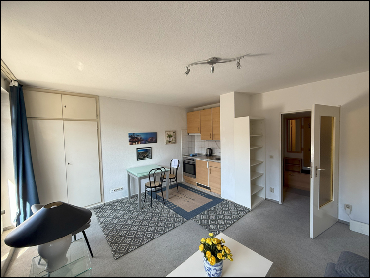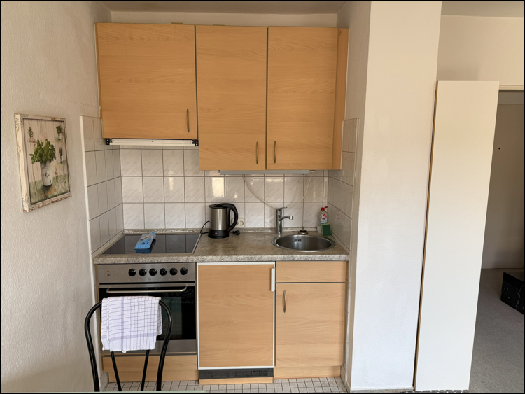 Ausstattung: Die Wohnung im 3. Obergeschoss überzeugt durch ihre durchdachte und gemütliche Raumaufteilung. Vom zentralen Flur gelangen Sie in das helle Wohn-/Schlafzimmer, das direkten Zugang zu einem großzügigen Balkon bietet – ideal zum Entspannen an sonnigen Tagen. Eine praktische Küchenzeile ist harmonisch in den Wohnbereich integriert.